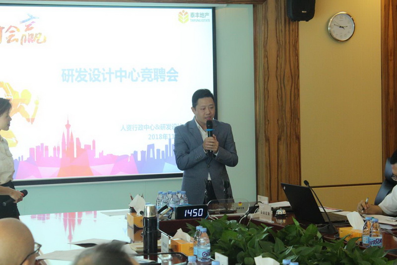 為滿足公司業(yè)務發(fā)展而產生的人才需求,拓寬員工職業(yè)發(fā)展通道,讓有能力的員工脫穎而出,2018年11月1日,泰豐地產研發(fā)設計中心聯合人資行政中心組織召開的“2018年泰豐地產研發(fā)設計中心競聘會”于集團大會議室隆重舉行。泰豐地產總裁袁毅先生,人資行政副總裁馬欣先生,運營副總裁王春濤先生,規(guī)劃發(fā)展副總裁徐健成先生以及部分中心負責人等共逾十人擔任評委,出席參與了此次競聘活動。